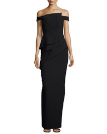 Chiara Boni La Petite Robe Kate Long-Sleeve Gathered Trumpet Evening Gown